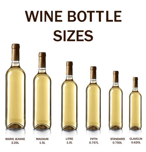 בין סוגי הבקבוקים הרבים שמוכרים כיום – למעלה מ-20 גדלים שונים – ניתן למצוא סוגים פחות נפוצים, מהבקבוק הקטן ביותר, ה"פיקולו" או "רבע בקבוק" (187.5 מ"ל), שמשמש בחבל שמפניה לאחסון כמות של כוס אחת של יין, ועד הבקבוק הנדיר והגדול ביותר, ה"מלכיצדק", המכיל 40 בקבוקי יין סטנדרטיים (30 ליטר).